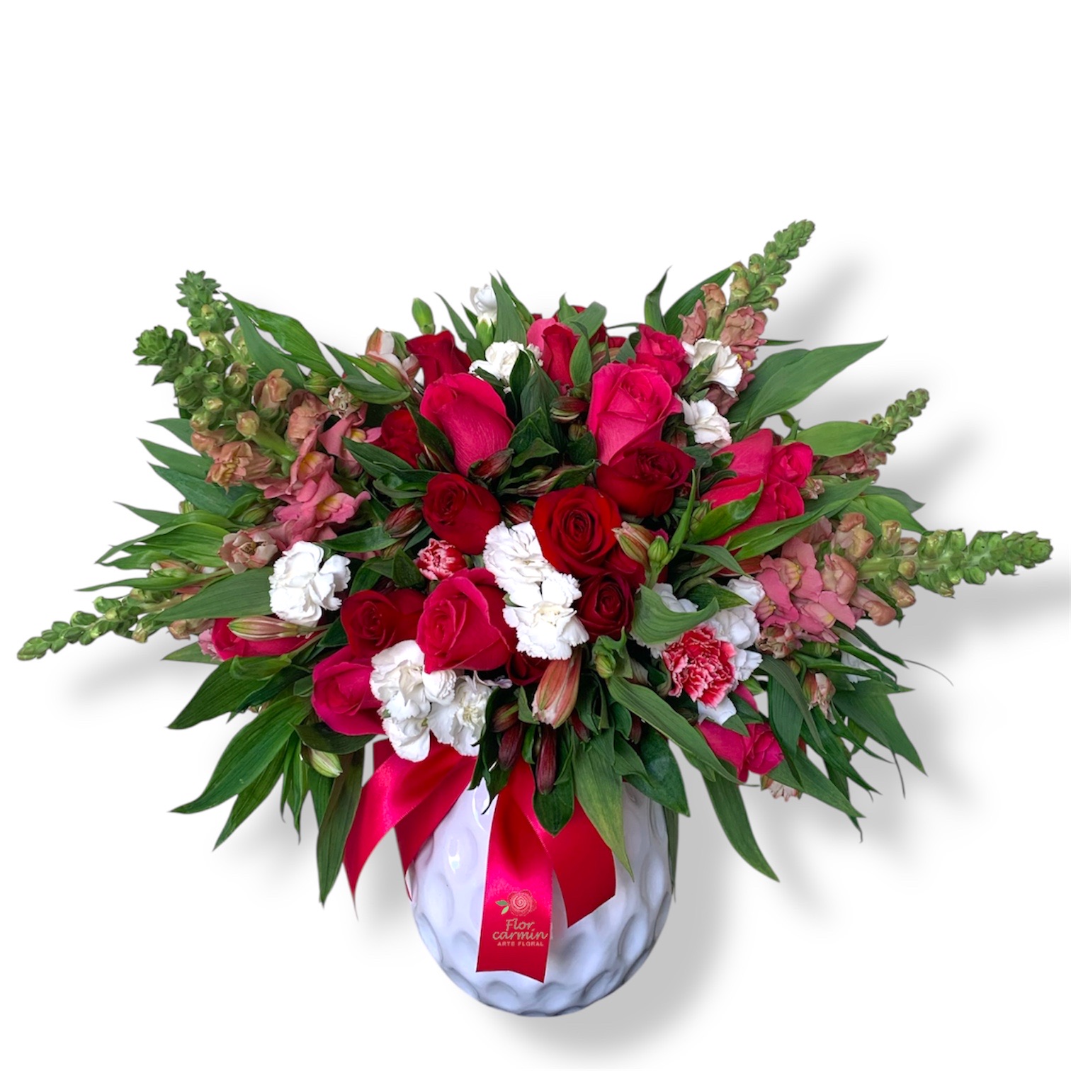 50 Rosas, Oriental, Clavelinas, Alstromelias, en base ceramica